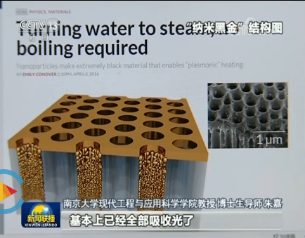 南京大學(xué)朱嘉教授和他的團(tuán)隊(duì)在實(shí)驗(yàn)中發(fā)現(xiàn)這種一面黑色一面是金色的納米材料,命名“納米黑金”,這種材料是世界上吸收光能力最強(qiáng)的納米金屬材料。此材料是一種光吸收波段寬(400nm—10μm)、光吸收效率高(>99%)、光熱轉(zhuǎn)換效率高(>90%)的吸收體。