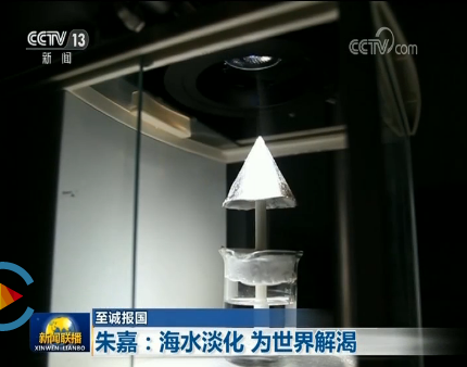2017年9月17日央視新聞聯(lián)播播出了南京大學(xué)和江蘇射陽(yáng)經(jīng)濟(jì)開(kāi)發(fā)區(qū)正式簽約,南京大學(xué)教授朱嘉和他的團(tuán)隊(duì)將“高效太陽(yáng)能海水淡化”技術(shù)成功轉(zhuǎn)化,將建成日產(chǎn)500噸純凈水的海水淡化生產(chǎn)線。在朱嘉教授團(tuán)隊(duì)的實(shí)驗(yàn)室中我們?cè)僖淮慰吹搅丝凭Ч镜脑O(shè)備: