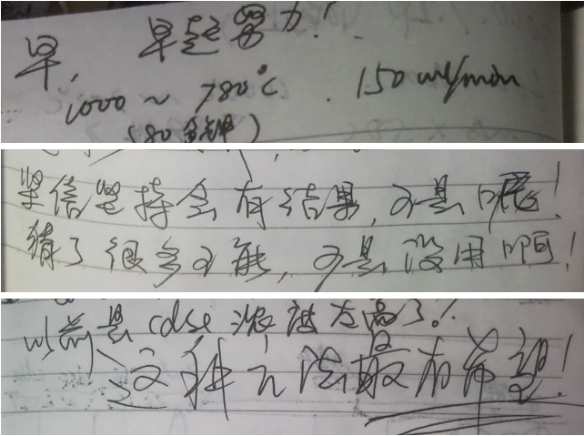 打開楊宗銀的實驗筆記,上面用英文密密麻麻寫著各類實驗優(yōu)化的細(xì)節(jié),但每天都有幾句中文格外醒目。“剛開始做實驗是非常有新鮮感的,但是失敗次數(shù)越多自己也會感到很無力。”他說,于是便在筆記中記下實驗中的靈光一閃,或者勉勵的話,“每天都期待好的結(jié)果,同時又期待新的一天快快到來。”