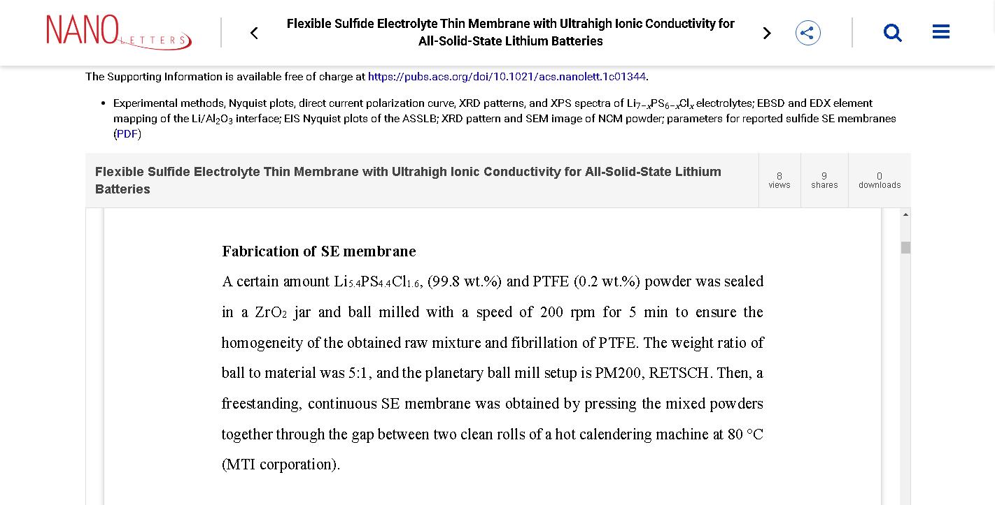 近期,被中國科學院寧波材料技術與工程研究所發表在(Nano Letters)上的一篇文章所吸引,闡述了加熱型軋機可以用來做柔性的電解質膜。