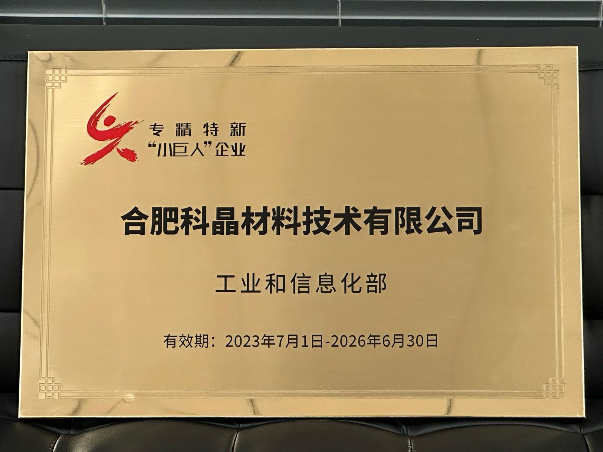 精益求精,開拓創新,合肥科晶榮獲2023年高新區示范引領獎-專精特新獎