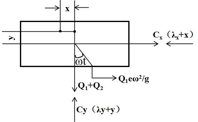 設Q1為偏心塊重,Q2為振動部分重量,ω為電動機角速度,e為偏心距,Cx為x方向的彈簧剛度,Cy為y方向的