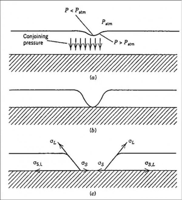 圖4異物顆粒處表面張力低,涂液向四周遷移