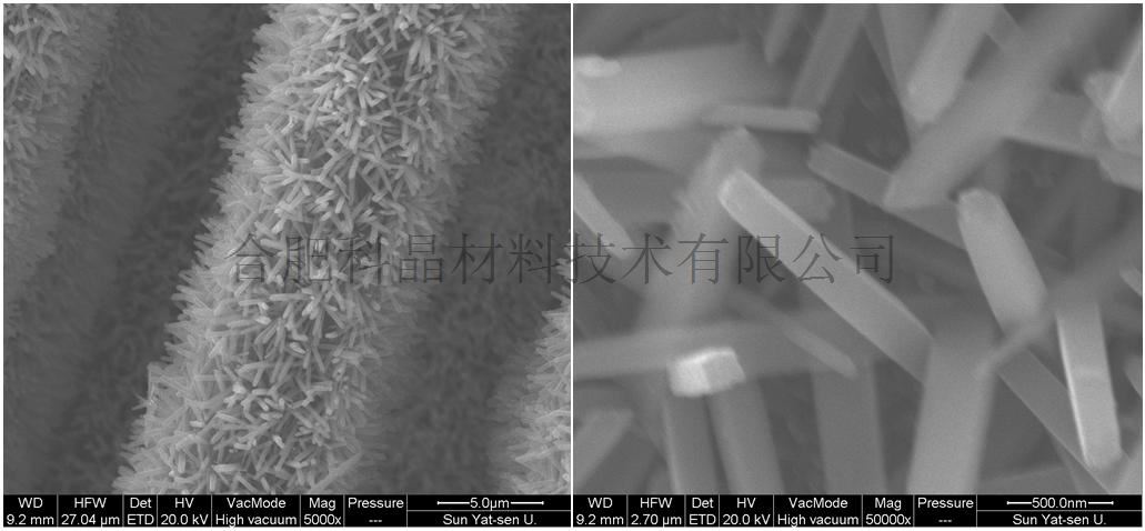 在導電碳布上經水熱方法合成TiO2納米棒陣列,納米棒平均直徑約100nm。
