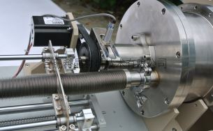 一根鎧裝熱電偶通過左端法蘭通入到爐管內(nèi)部,并與坩堝相連接(圖1) 通過步進(jìn)電機(jī)驅(qū)動使坩堝移動,并和熱電偶和坩堝一起移動,實時監(jiān)測樣品的溫度 進(jìn)氣端法蘭轉(zhuǎn)輪式法蘭(圖2) 可同時在轉(zhuǎn)輪系統(tǒng)中放入4個坩堝,可交替將放入4種材料的石英坩堝自動送入到石英管中(可在真空狀態(tài)或氣氛保護(hù)狀態(tài)進(jìn)行運(yùn)作)