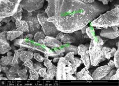 實驗序號 | 磨機轉速(rpm/min) | 粉末時間 (min) | 粉末后粒徑(um) | 電鏡掃描圖像 |