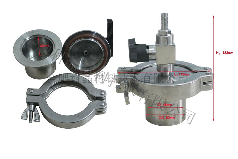 KF50標準卡箍 1/8’’不銹鋼真空球閥 1/8’’寶塔嘴轉接口 可對罐體抽真空通氣氛