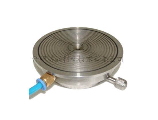 - 真空吸盤是我司自主設計研發的一款用于固定薄片狀樣件的精密真空用設備,吸盤上有一定的孔洞,即通過氣動管路或一定的抽真空裝置,通過吸盤上的孔洞抽走或稀薄密閉空間里的空氣,使內外產生壓力差,將樣件和真空吸盤牢牢地擠壓在一起,從而將薄片狀樣件吸附固定住。真空吸盤主要適合不適用于用粘結方法固定的,且能承受一定的吸力的樣品。真空吸盤可與我司制造的SYJ-400劃片切割機配套使用,用于切割或對薄片狀樣品劃槽時吸附固定樣品使用;可與真空旋轉涂膜機配套使用,用于吸附固定將要進行涂膜的薄片狀樣品用。