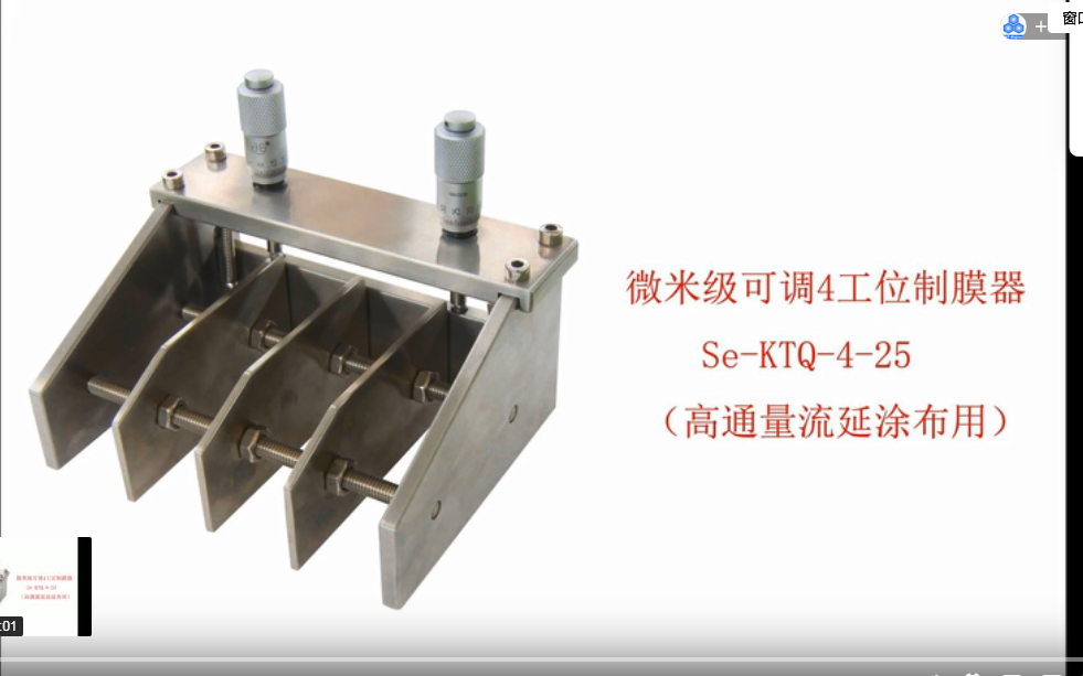 - Se-KTQ-4-25是一款微米級可調4工位制膜器,可與本公司流延涂布機結合使用,一次性涂覆4種不同的材料樣品,縮短實驗周期,實現高通量方法在流延涂覆制膜中的應用。(更新時間:2018.9.27--XI)