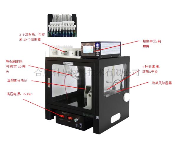| 選配功能 | ? 可選雙通道注射泵(圖1) ? 可選雙層同軸噴頭用于制備中空納米纖維(圖2、3) ? 可選籠狀收絲器(圖4) 圖一 圖二 圖三 圖四 |