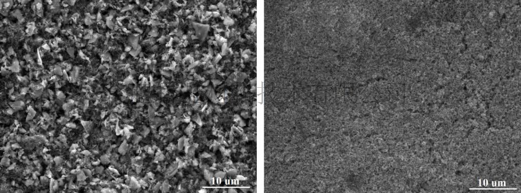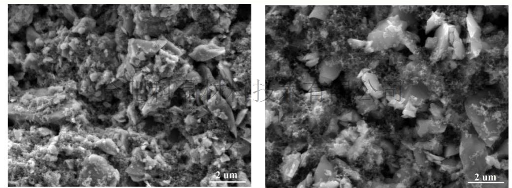 取出混料后的負極材料,均勻的涂抹在載樣銅箔上,便于測試,SEM圖如下