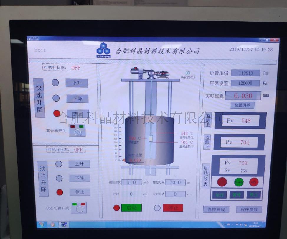 | 溫控系統(tǒng) | ·采用PID方式控溫,可設(shè)置24段升降溫程序 ·帶有超溫和斷偶保護(hù) ·采用歐陸儀表(Eurotherm),控溫精度可達(dá):±0.1℃ ·熱電偶:B型熱偶(一熱電偶探在樣品臺(tái)底部,測(cè)其坩堝底部溫度。一根熱偶從上方插入到坩堝內(nèi)部,實(shí)時(shí)監(jiān)測(cè)其樣品溫度,也可測(cè)出整個(gè)爐體內(nèi)的溫度分布) ·控制界面:在一觸摸屏上設(shè)置和檢測(cè)各參數(shù),如加熱溫度,加熱速率,移動(dòng)速度和移動(dòng)位移等 |