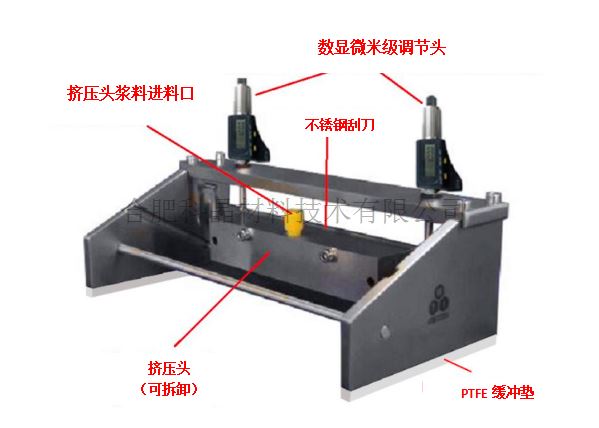 ·數顯型微米級調節頭,精度:±0.001mm 微米級調節頭安裝在刮刀的上端,用以調節擠壓頭和基底之間的距離