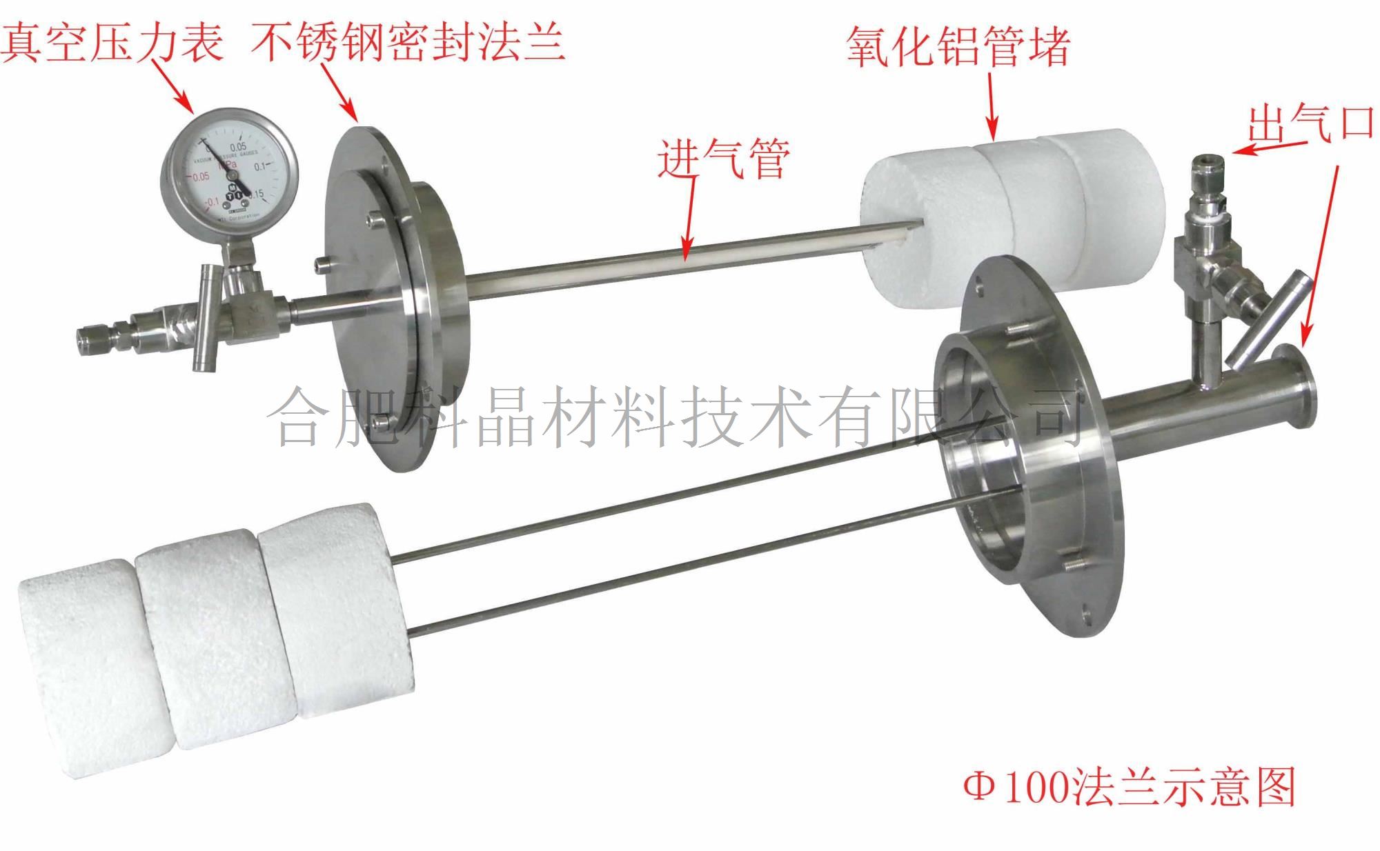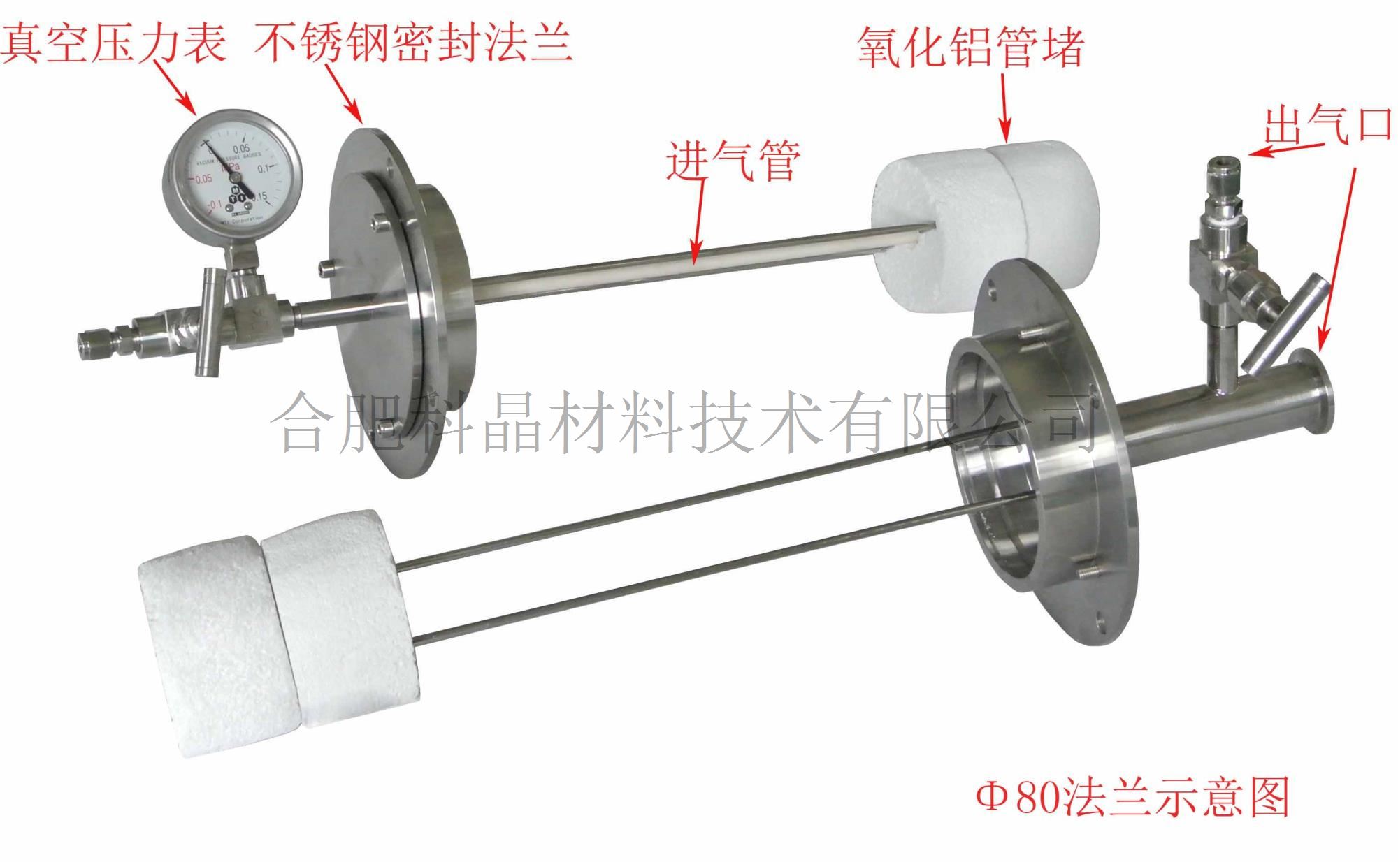 | 爐管與法蘭 | · 標配一根剛玉管,尺寸:Φ60*1000mm??晒┻x裝Φ80,Φ100,Φ120不同管徑剛玉管 · 標配有兩個不銹鋼真空法蘭(上面已安裝了機械壓力表和不銹鋼截止閥) Φ80法蘭示意圖 Φ100法蘭示意圖 · 進氣端法蘭安裝有一根4孔的陶瓷管,可以將進氣穿過管堵,直接進入高溫區。配套的兩個管堵直接固定在法蘭上面,方便客戶每一次裝取物料。 · 抽真空端法蘭安裝有一個KF25接口,方便客戶連接真空泵。 在爐體上面安裝有一套法蘭支撐架,用于客戶每次拆裝法蘭之后,放置法蘭用。 |