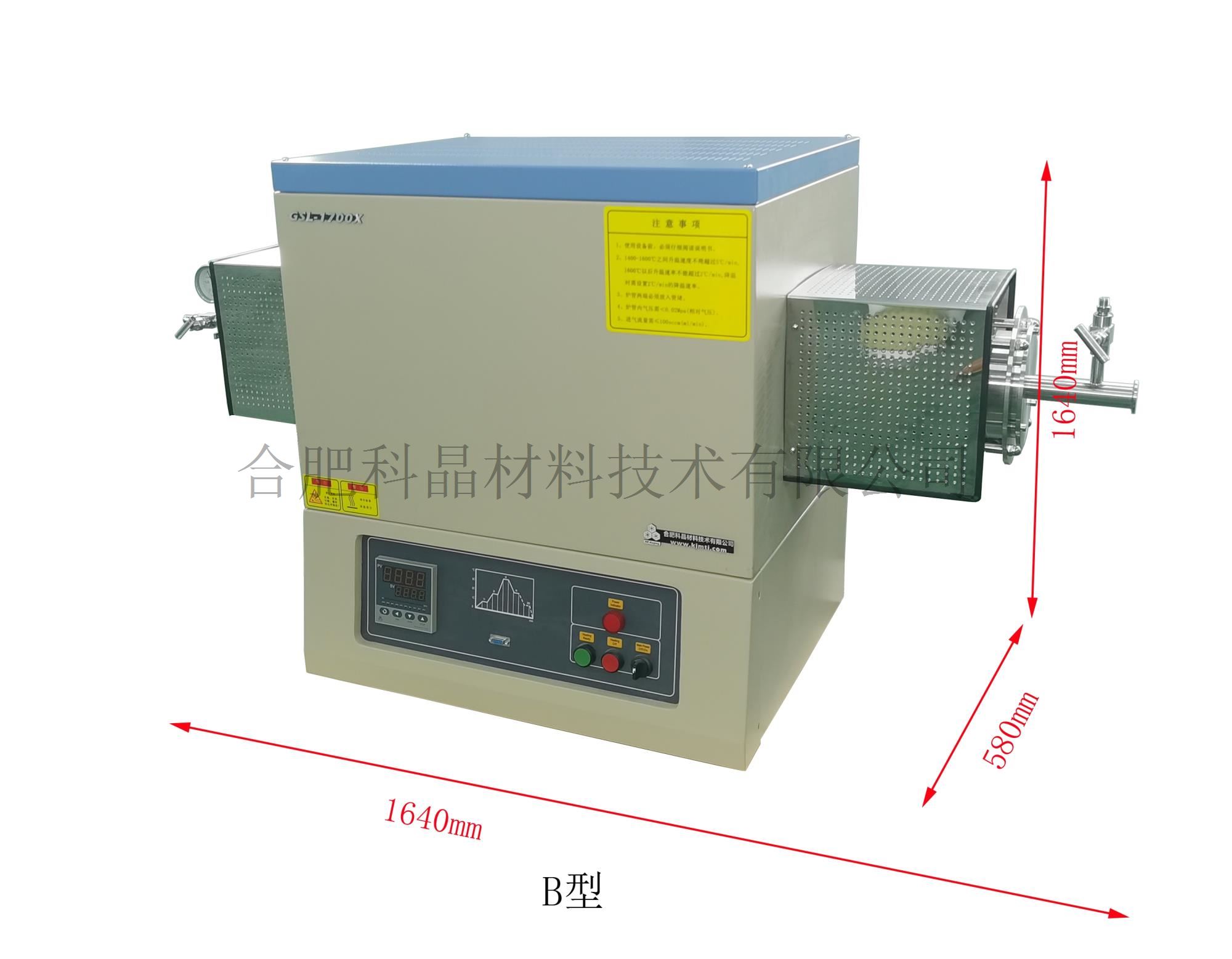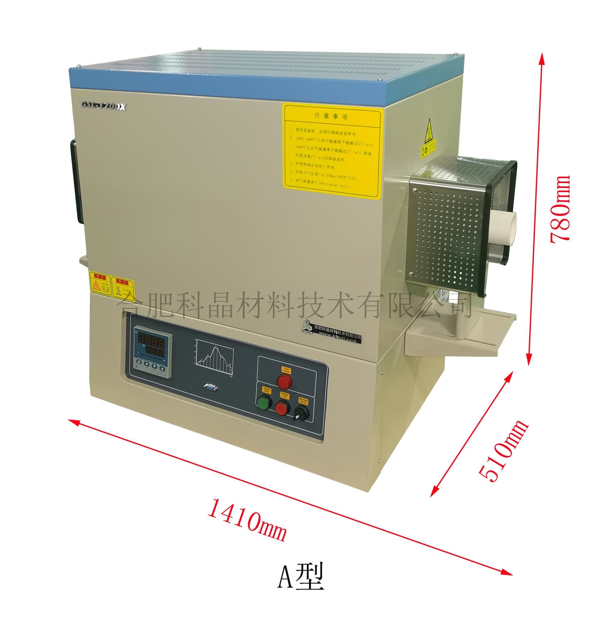 | 外形尺寸 | · 本產品分兩個外形尺寸,A型可裝載φ60*1000mm和φ80*1000mm規格的爐管,B型可裝載φ100*1200mm和φ120*1200mm規格的爐管 · A型:1410mm(L)*510mm(W)*780mm(H)(含爐管法蘭) · B型:1640mm(L)*580mm(W)*780mm(H)(含爐管法蘭) |