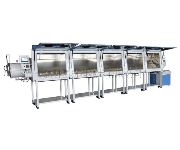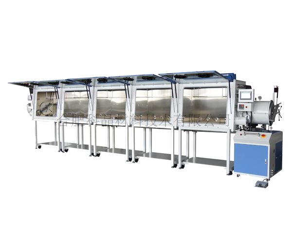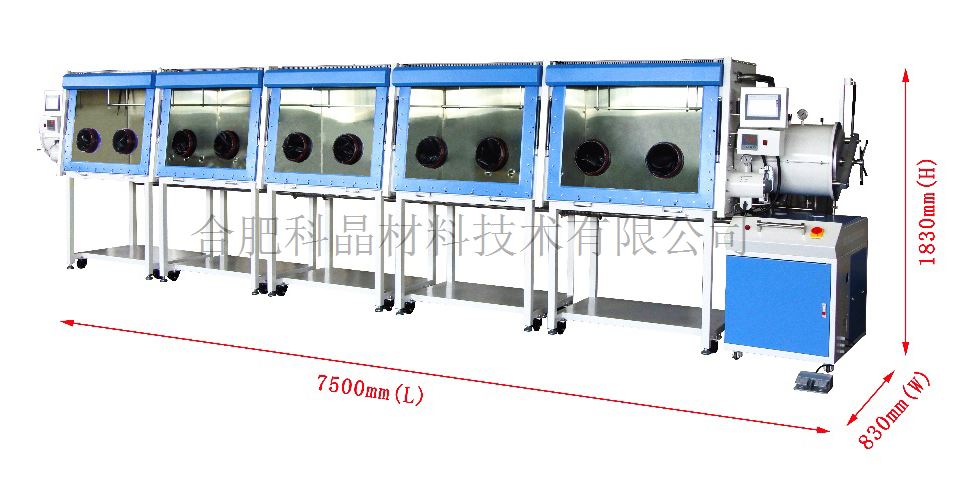 | 手套箱腔體 | · 腔體材料:304不銹鋼,厚度3mm · 前窗開啟式設(shè)計(jì),材料為透明鋼化安全玻璃,厚度8mm · 腔體為5接,每節(jié)腔體尺寸為1220mm(L) x 770mm(W) x 890mm(H),總尺寸為6100(L) x 780mm(W) x 900mm(H) · 每節(jié)手套箱腔體頂部都安裝有滑動(dòng)物料板:300mmL×250mmW×300mmH · 接口:每節(jié)箱體后側(cè)有4個(gè)KF40接口 |