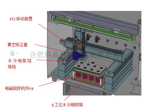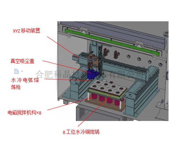 | 結構 | ? 8工位高通量電弧熔煉系統包含: ? 循環(huán)手套箱,保證水氧含量小于1ppm ? 1個8工位的水冷銅坩堝 8工位電磁攪拌裝置在銅坩堝底部(每個銅坩堝底部一個電磁攪拌裝置) ? 水冷鎢電極固定在X-Y-Z運動機構上 ? 手動的電弧熔煉槍,帶有KF40饋通,可與手套箱連接 ? 58 L / min循環(huán)水冷機 |