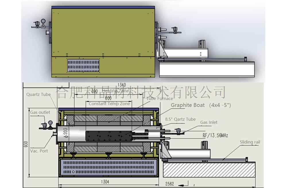 | 石英管&法蘭 | · 外徑304mm×內徑203mm×長度1300mm · 設備包含一根石英管,可購買備用石英管 · 配有SS304不銹鋼法蘭,帶有KF40真空接口&閥門和進氣口&出氣口 · 安裝有一套雙滑軌,直流電機驅動法蘭和樣品舟移動進出石英管 |