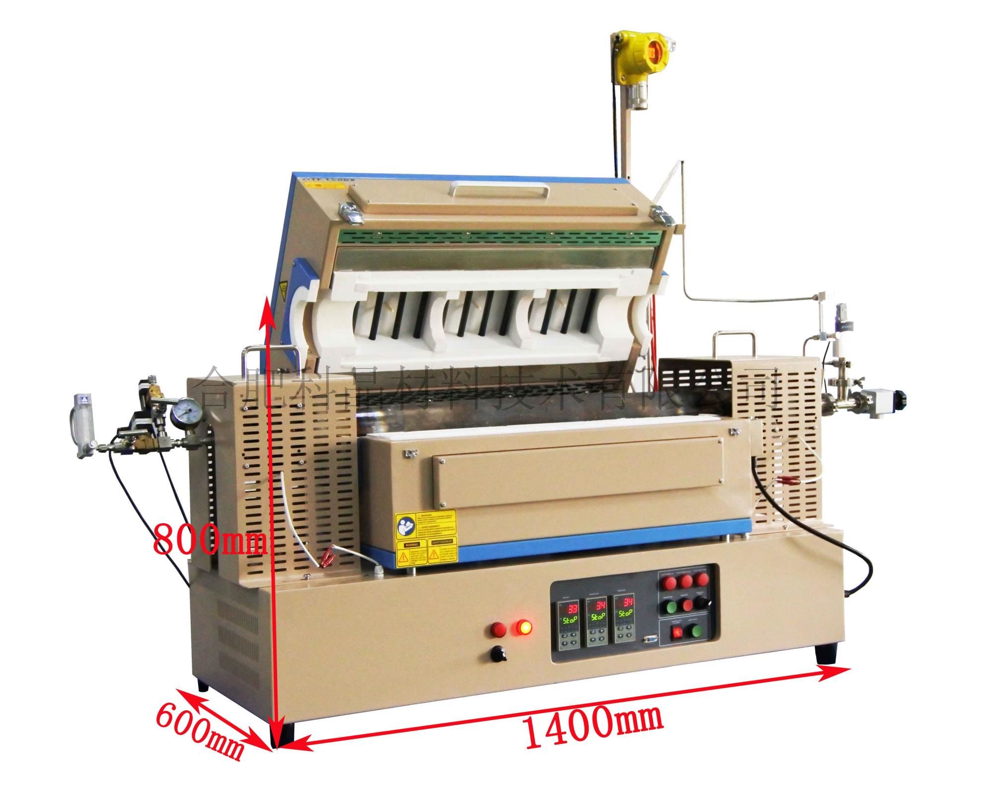 | 產品名稱 | 1500℃三溫區管式氫氣爐(配82mm高溫合金管,氫氣檢測與處理系統)-OTF-1500X-III-H2 |