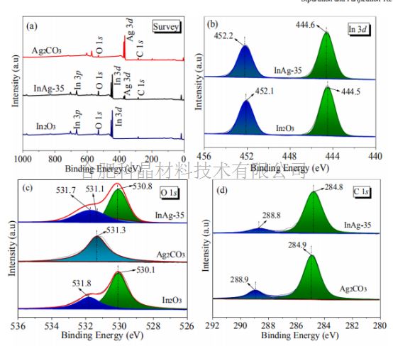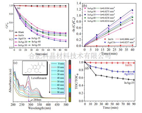通過匹配能帶與兩個半導體建立異質結可以極大地提高光催化性能。因此,一種新的利用原位熱液沉淀法合成了In2O3/Ag2CO3s方案異質結。通過DFT計算證明,s型異質結In2O3/Ag2CO3系統中光致電子的傳輸機制如下,內部電場(IEF)由In2O3/Ag2CO3的s型異質結驅動了光源電子fr由碳酸銀導帶直接轉移到In2O3價帶,可使光致電子空穴對的有效分離。In2O3/Ag2CO3的光致發光壽命大大延長到8.42ns,而空穴和羥基自由基是最重要的活性自由基。在可見光下,Ag2CO3的氣色結對左氧氟沙星的光降解率(86.1%)和礦化能力(46.2%)最高。