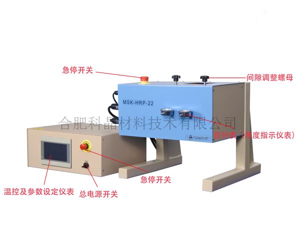 - MSK-HRP-22立式加熱型輥軋機,軋輥寬度為100mm,2個軋輥獨立溫度控制和獨立轉速控制。觸摸屏控制面板,控制盒與主機獨立分開,并帶有RS485接口,可與電腦連接。
