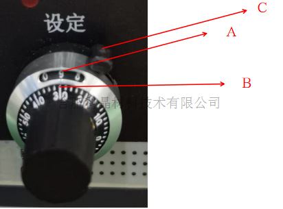 | 顯示儀 | · 型號:D08-1F · 最大流量顯示為:9999 · 顯示儀的面板上裝有“閥控”開關。閥控開關有三個位置,正常工作時置于“閥控”位,需要通氣清洗通道時,置于“清洗”位,不用時應置于“關閉”位。 · 設有一個流量設定旋鈕,通過旋轉旋鈕調節進氣流量的大小,如下圖:氣體流量為93(先讀旋鈕A上的十位數,再讀旋鈕B上的個位數)。C為機械鎖(鎖上后旋鈕無法轉動) · 當需要設定的流量為100 SCCM時,需將A、B旋鈕順時針旋轉到0,即上下旋鈕所對應的數字為“00”。 |