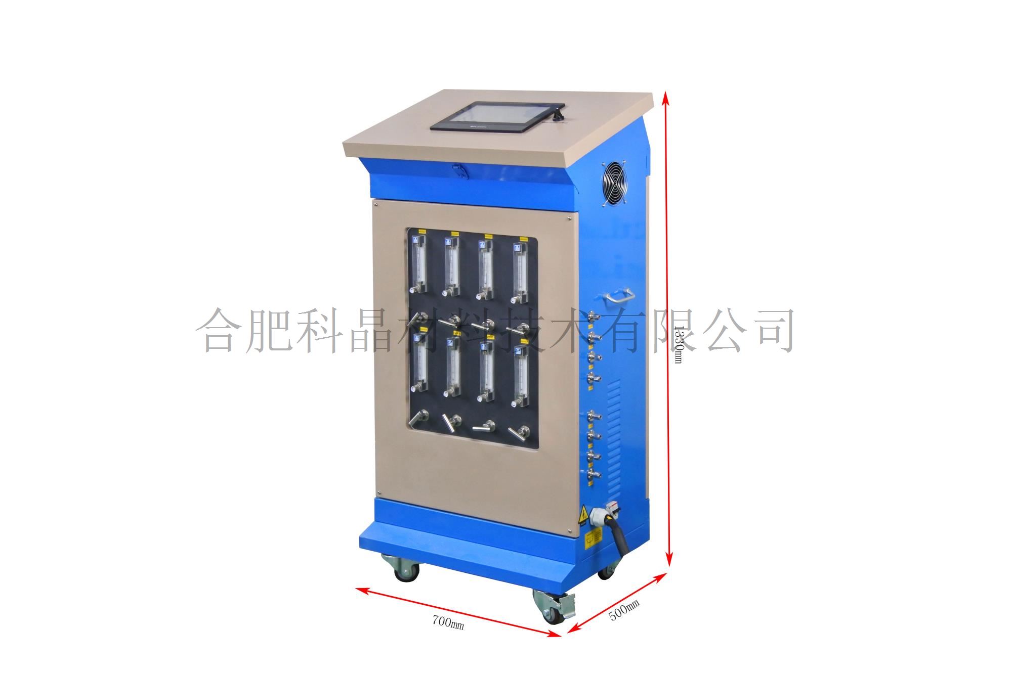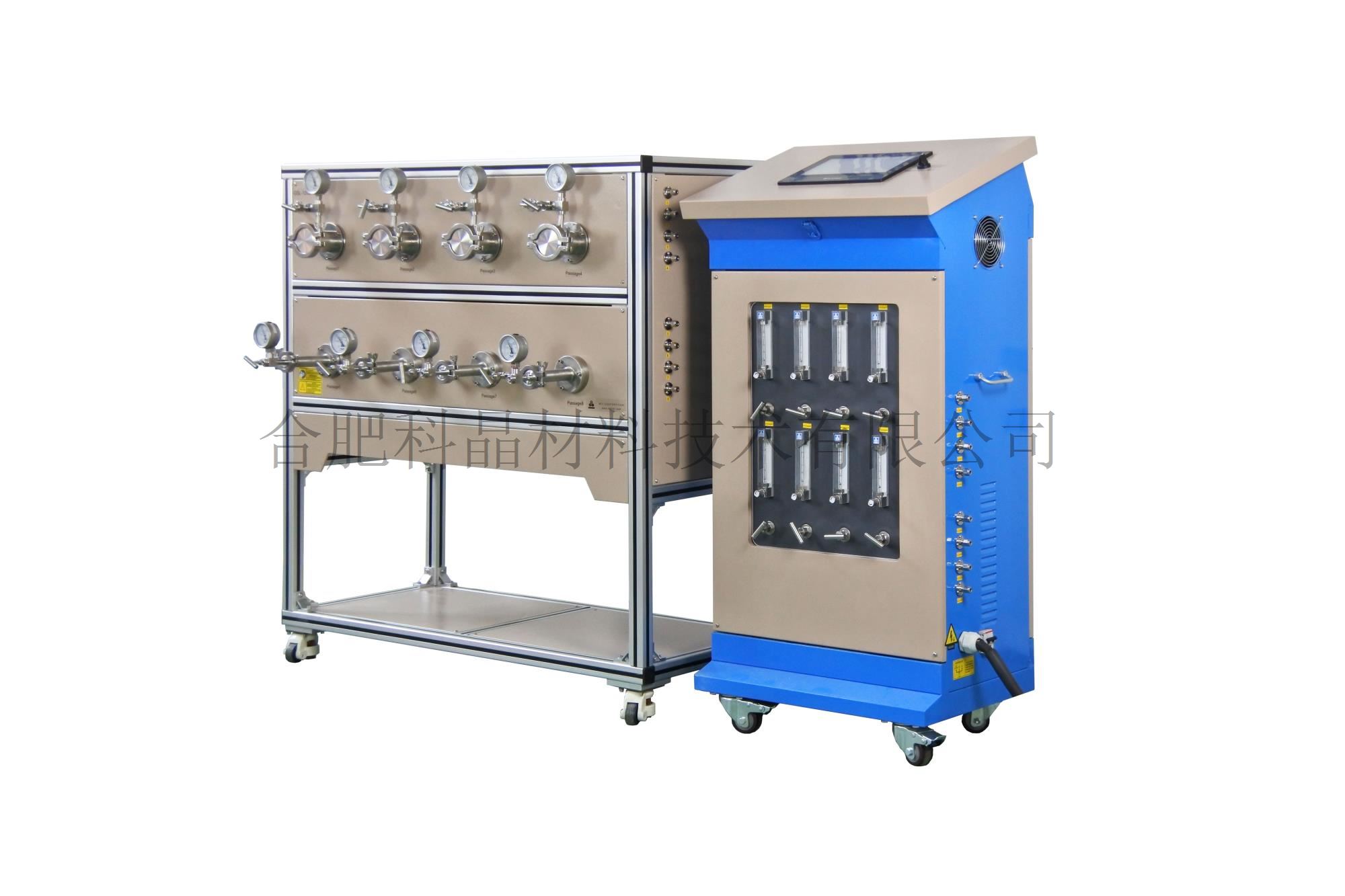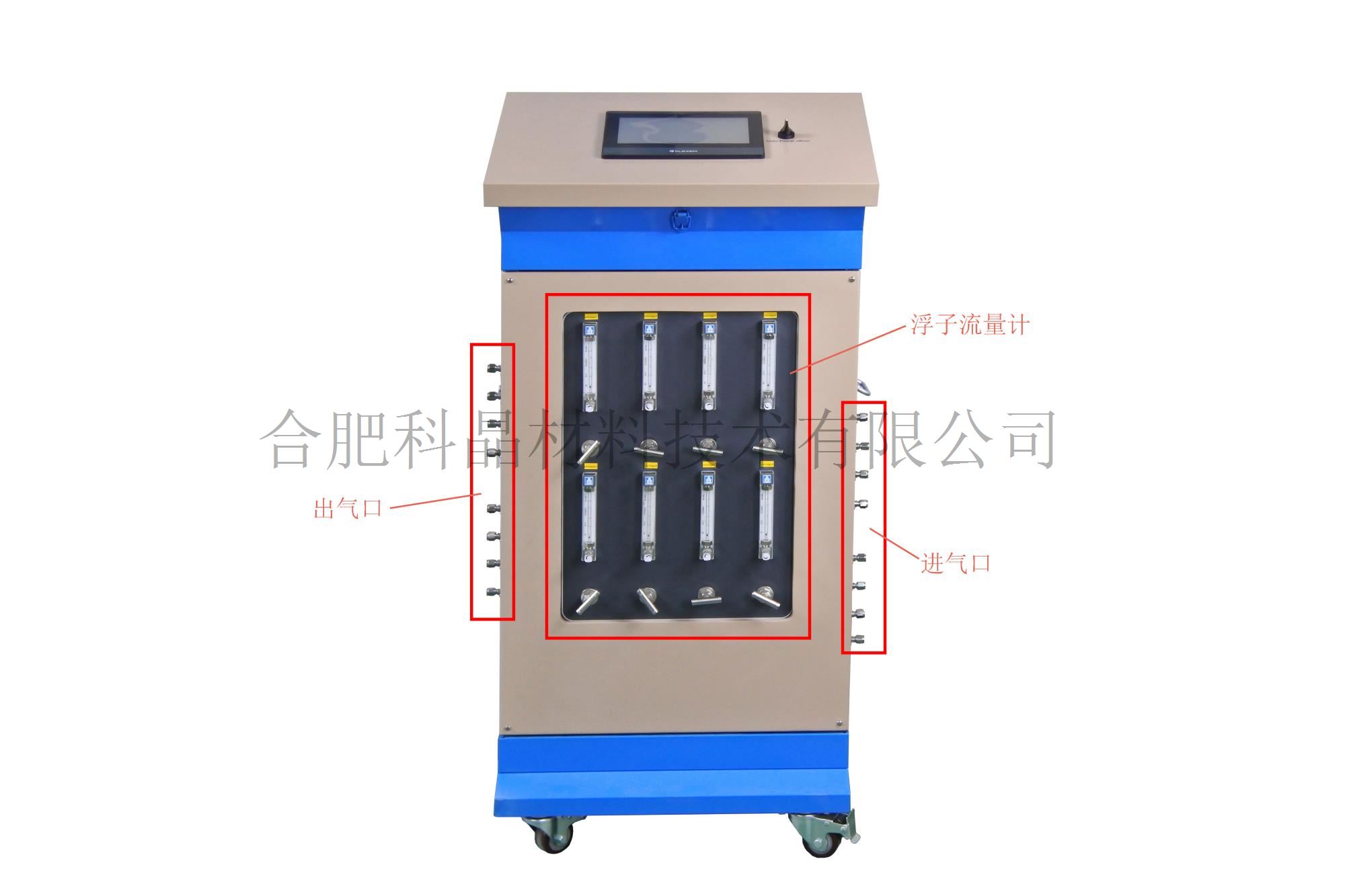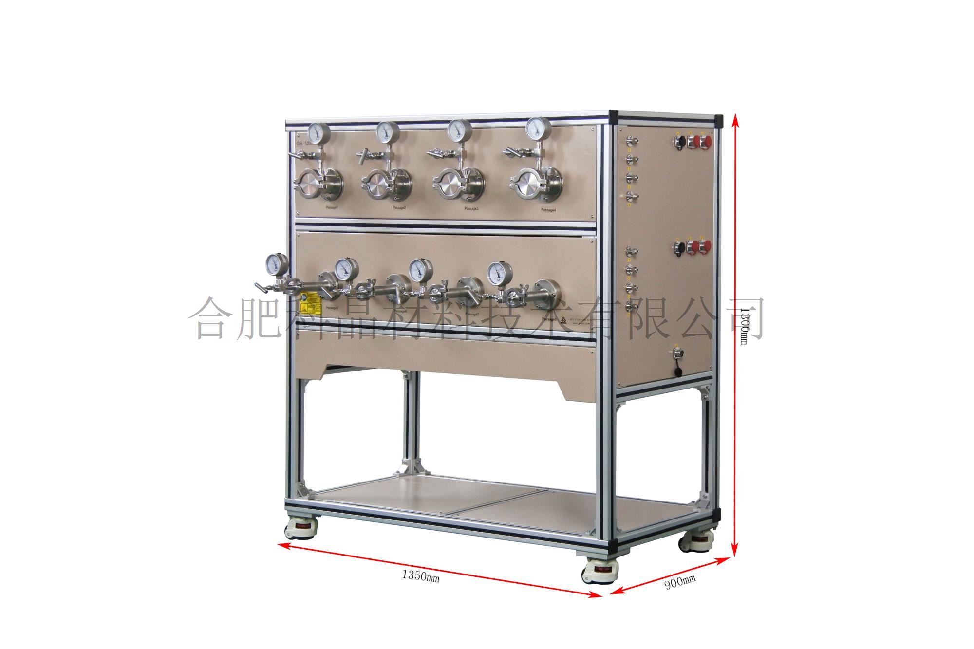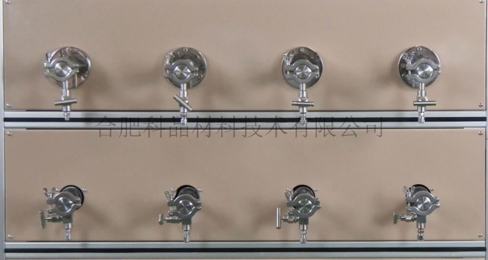 | 不銹鋼密封法蘭系統 | · 自然冷卻KF接口快速法蘭與殼體固定 · 材質:不銹鋼304 密封結構:Φ3.5硅膠圈 · 前端法蘭采用KF卡箍形式方便取放樣品,裝有機械壓力表,截止閥,G1/4進氣口 ·后端法蘭留有KF25抽氣口,出氣口和截止閥 · 每個通道有獨立的進氣和出氣口,可實現真空和氣氛下燒結制備 · 爐體右側分別有8個獨立的進氣口 ·電氣控制柜右邊有8個獨立的進氣口,通過8個40-400ml/min浮子流量計進行氣流量調節,從左邊出氣然后和法蘭進氣口連接。 |