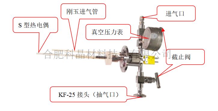 | 不銹鋼密封法蘭 | · 一個φ50的不銹鋼密封法蘭安裝在滑軌架上 · 法蘭上安裝了一個機(jī)械壓力表用于觀察爐管內(nèi)的壓力,壓力表范圍-0.1-0.15MPa;一個φ6.35的卡套接頭作為進(jìn)氣口使用,并通過一個不銹鋼針閥控制進(jìn)氣的通斷,一根φ5mm的剛玉管安裝在法蘭內(nèi)部,作為進(jìn)氣管使用 · 一個KF25的接口用于連接真空系統(tǒng),同時也作為出氣口使用,一個不銹鋼針閥控制抽氣與出氣的通斷 · 一個φ6.35的鎧裝接口用于插入測溫?zé)犭娕迹綔y爐管的溫度。前面板上的溫度顯示儀表顯示此熱電偶探測的溫度 |