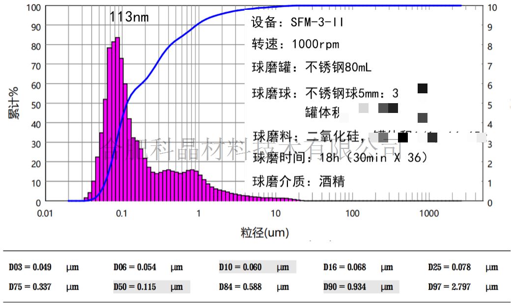 試驗結果:目前階段最好的結果是1000轉球磨18h所得結果113nm,經多次驗證,結果準備,詳細如下