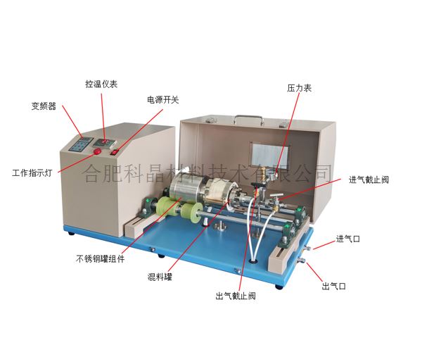 | 氣氛 | · 安裝有一個Φ6.35mm雙卡套接頭作為進氣口使用,一個不銹鋼針閥控制進氣的通斷,安裝了一個量程為-0.1-0.5Mpa的不銹鋼真空壓力表和一個安全閥,當腔體壓力超過最高耐壓0.3Mpa時,安全閥將自動排氣,以保護球磨腔體。 · 一個Φ6.35mm雙卡套接頭作為出氣口使用,通過一個球閥控制出氣的通斷,另外預留一個Φ3.175mm的熱電偶孔,方便客戶實時監測不銹鋼罐內部物料實際溫度。 · 設備側面底座上含有兩個φ6.35的卡套接頭為進出氣口,進氣口通過氣管與氣瓶相連接(可選配安裝浮子流量計控制進氣量),出氣口連接氣管將氣體排出。 |
