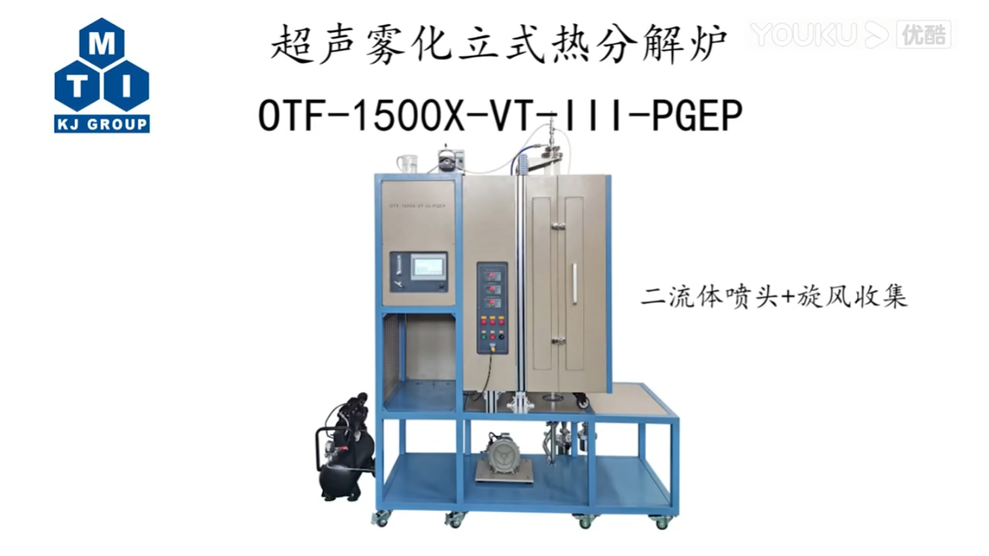 | 設備名稱型號 | 1500℃三溫區超聲霧化熱分解立式管式爐(φ25.4-φ60×1560mm,300×300×300mm)- OTF-1500X-VT-III-PGEP |