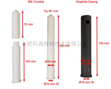 | 坩堝 | · 設備中包含2個石英坩堝,噴嘴孔徑為Φ1mm,可熔化熔點≤1500℃的金屬材料(因樣品量少,熔化速度較快,可熔化熔點高于石英軟化溫度的金屬) · 可選購BN材質的坩堝,用于熔化熔點更高的金屬樣品 · 可選購石墨護套(石墨護套+石英坩堝+較大的感應線圈)用于熔煉熔點較高或感應發熱量較小的材料 |