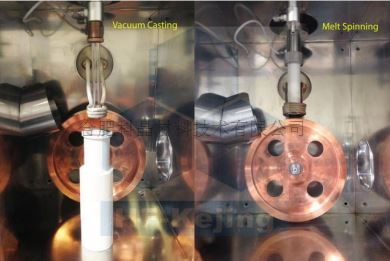 | 特點 | · 可熔化材料熔點~ 2000℃,最大處理樣品量為10-20g · 直徑為200mm的轉動銅輪,最大轉動線速度為31m/s · 熔煉坩堝與銅輪之間的距離可調節0~10mm(手動調節) · 設備中配有真空噴鑄工位,可用于鑄造甩帶用的母合金 · 設備尺寸較小可節約實驗室空間 |
