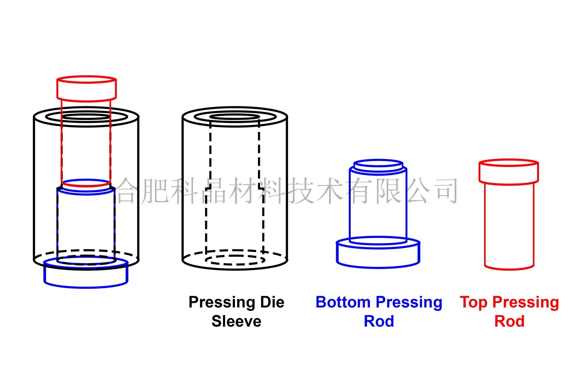 | 模具安裝示意圖/說明 | ·用瑪瑙研磨缽混合研磨粉末; ·將粉末在高溫爐中用適當的溫度進行煅燒混合; ·將煅燒后的粉末再次用研缽研磨; ·再將粉末倒入模具中; ·將樣品在壓力機中用適當的壓力進行壓制 (您可以使用CIP再次按壓,使密度增加約5-10%。) ·從模具中取出樣品 ·再用合適的溫度進行燒結 |