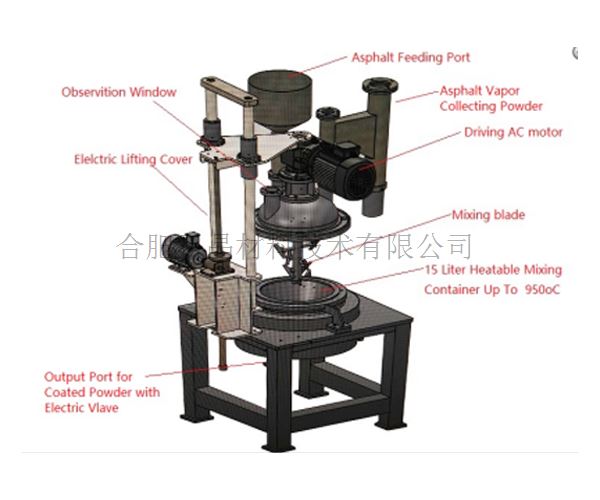 | 底部容器: ·混合罐材質為310S不銹鋼 ·罐體容積: 15 L ·有效容積: 6-12 L ·出料口: DN100法蘭連接一個氣動插板閥 混料罐上蓋: ·材質為310S不銹鋼 ·通過電機驅動上蓋的升起和下降 加熱: ·加熱電阻絲纏繞在加熱管的外壁,對加熱罐進行加熱 ·最高工作溫度: 700oC ·控溫精度:±50℃ | 攪拌槳 | ·攪拌槳材質:310S不銹鋼 ·攪拌速度:0~100RPM(可調) | 溫度顯示 | 2個溫度顯示器,顯示進料口溫度和爐膛內部溫度 | 設備尺寸 | 940mm×1070mm×1920mm | 設備重量 | ~350kg |