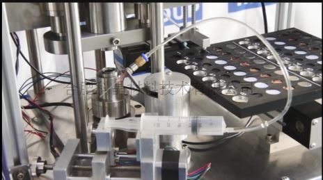 | 設(shè)備運行 | ·設(shè)備中包含一臺筆記本電腦,安裝用專用軟件,用于控制設(shè)備所有操作 ·配有4個樣品托盤,托盤尺寸為265mm×232mm,每個托盤可以完成16套紐扣電池的組裝。 ·3個機(jī)械抓依次抓取紐扣電池組件,放入到封裝模具進(jìn)行封裝,電池的正/負(fù)極片分別用不同的機(jī)械手抓取,避免相互污染。 ·安裝有一個注射泵,用于自動注液,注液精度為13ul ·電動封裝機(jī)封裝壓力可設(shè)置,用于可設(shè)置合適的封裝壓力 ·封裝好的16個紐扣電池會自動放回托盤 ·裝配速度: 1分鐘44秒封裝一個電池 ( 32個電池/ 小時) ·一致性: > 95% |