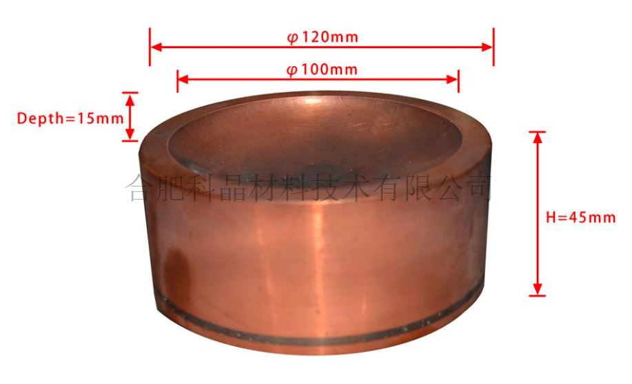 | 銅坩堝 | ·水冷旋轉銅坩堝安裝在真空腔體底部 ·銅坩堝尺寸為:100mm直徑×15mm深度 ·旋轉速度:1-20rpm(可調) ·需要水冷卻,水流量>58L/min,可在本公司選購循環水冷機 水冷銅坩堝 循環水冷機 |