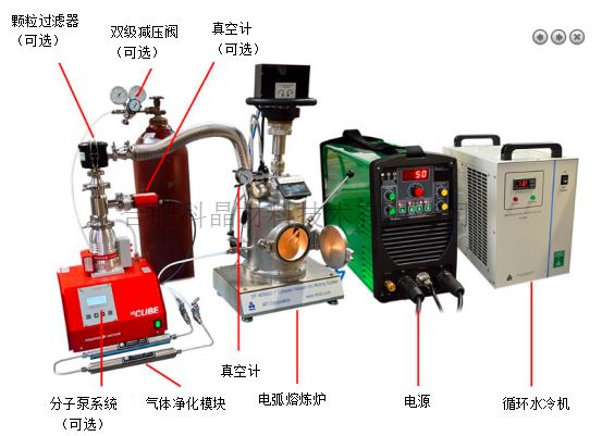 | 水冷機&氣體 | · 需要循環水冷機(標配中不包含),對腔體,銅坩堝&模具,和電極水冷 · 可在本本公司購買循環水冷機KJ-5000 · 水冷管尺寸:外徑12mm×內徑8mm · 熔煉樣品需要高純氬氣(純度≧5N)(設備中不包含) · 熔煉時可能需要5% H2 + 95% Ar防止樣品氧化 |