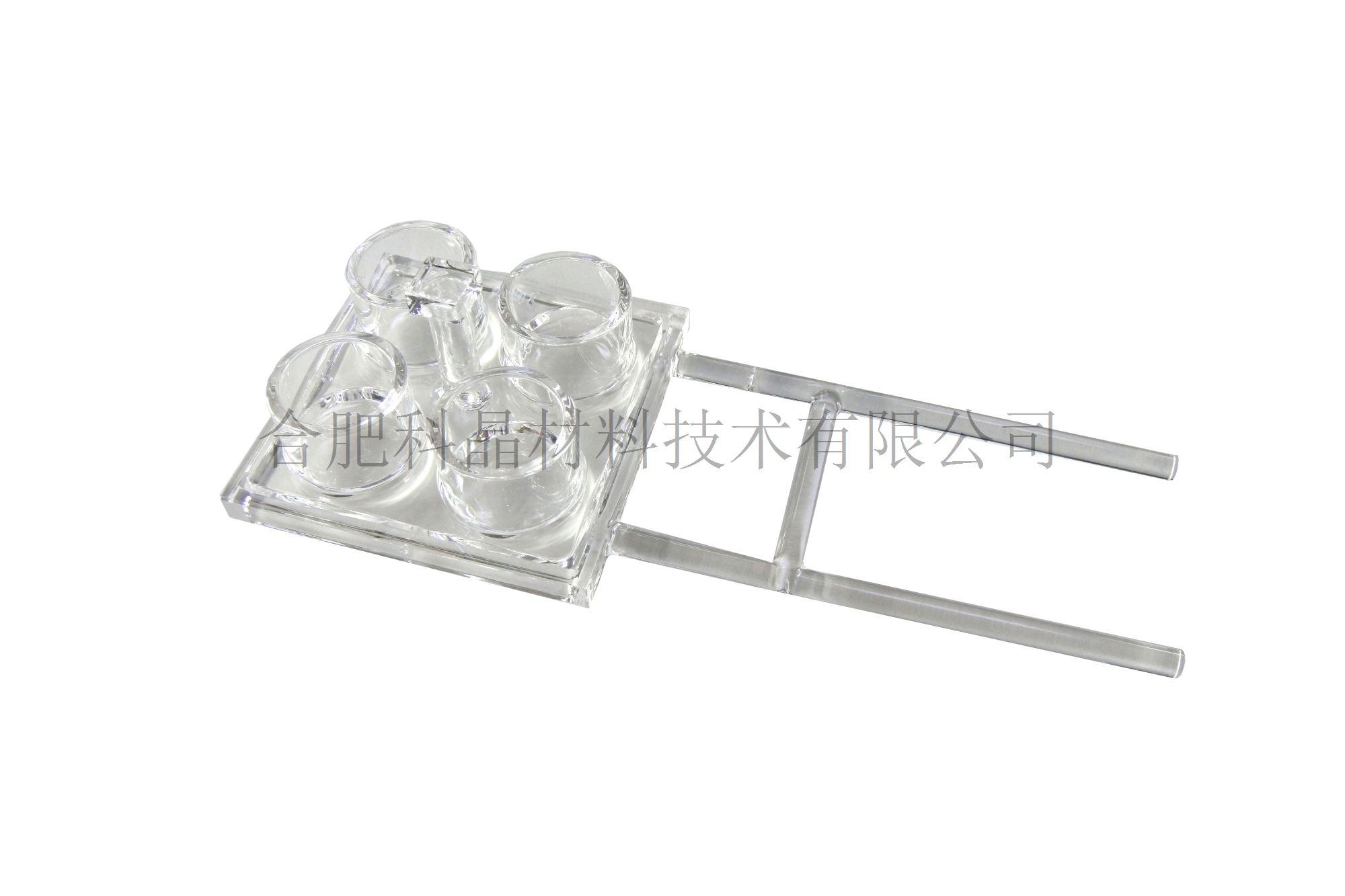 | 樣品臺支架 | ·樣品臺支架有兩種: 一種可以放四個坩堝(坩堝材質可以根據客戶需求定制,如石英,氧化鋁,石墨) 一種可以放置25-30片四英寸基片的石英支架如下圖 ·樣品臺支架材質是石英的 ·坩堝尺寸外徑40mm高30mm ·樣品臺支架留有機器人抓取位置 ·樣品臺帶有刻碼處理便于視覺傳感器捕捉 |