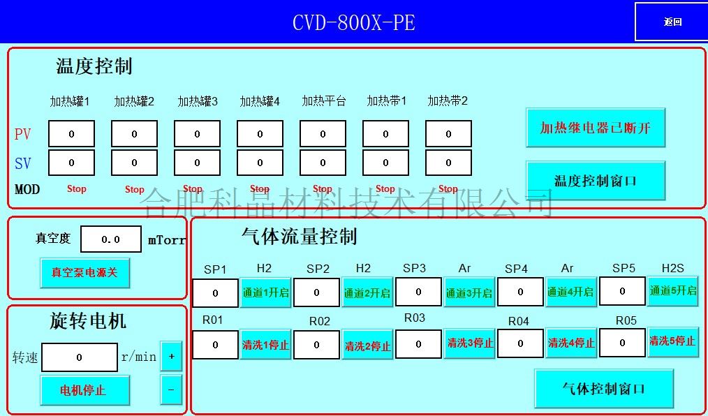 | 氣液混合罐系統(tǒng) | · 系統(tǒng)配置有7套加熱系統(tǒng),其中 4套用于氣液混合罐的加熱,用于固相源的氣化 2套用于加熱帶,給管路加熱,保證氣源不被冷卻 1套用于加熱平臺,保證樣品的溫度 ·所有溫度的控制均由觸摸屏(或上位機(jī))進(jìn)行操作控制 ·氣液混合罐容積:100ml ·氣液混合罐材質(zhì):316L ·最大壓力:0.15MPa ·壓力表范圍:-0.1MPa—0.15MPa ·最高加熱溫度:200℃ ·控溫精度:±1℃,可實現(xiàn)28段程序PID控溫 ·從氣液混合罐到氣體分散噴頭的氣體連接管路外面都纏繞有管道加熱帶,用于給管道保溫,防止固相源由于溫度過低冷凝 ·管道加熱帶最高加熱溫度:150℃ |