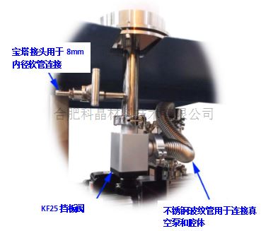 | 石英管&密封法蘭 | ·130mm(外徑) x 122mm(內徑) x 360mm(長度) 石英管(圖1). ·頂部法蘭:帶有Φ6.35通氣口和出氣口,3電極 ·底部法蘭:帶有截止閥和KF25真空接口(圖2) ·配有1m不銹鋼波紋管和KF25手動擋板閥用于連接真空泵(圖3) 圖1 圖2 圖3 |