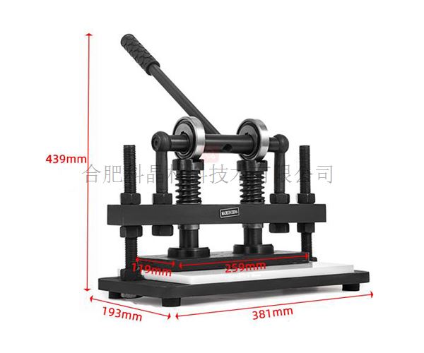 | 切割機(jī)結(jié)構(gòu) | ·手動(dòng)下壓桿用于切割 ·壓板尺寸:119mm x 259mm ·一個(gè)PVC板在壓板底部,為了保護(hù)刀模不受損壞 ·配有一套扳手,用于調(diào)節(jié)壓板位置 |