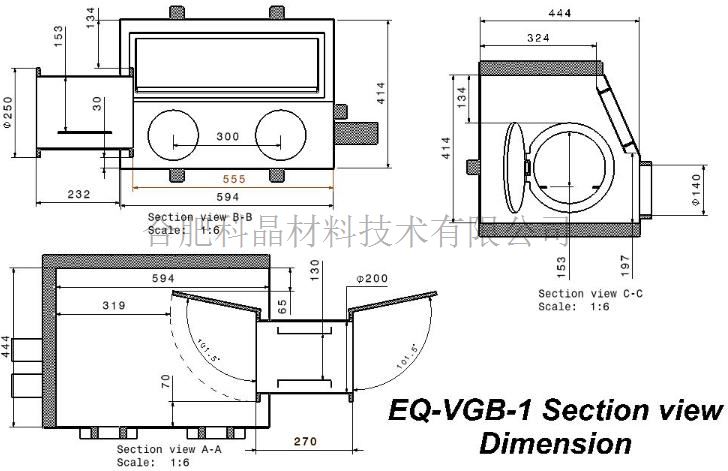 | 手套箱腔體 | ·材質:采用3mm厚的304不銹鋼,帶有加強筋提高強度,所以手套箱可以承受抽真空 ·尺寸: 555 (L) × 444 (W) × 414 (H) ·窗口尺寸: 480 (L) × 125 mm (H) ·最大可承受正壓: 810 Torr (1.1 atm) o 注意:若手套箱內氣壓高于810Torr,不可操作手套箱 ·最大真空度: 1.59E-2 Torr o ~50 Torr (抽真空5分鐘) o ~6E-2 Torr (抽真空4小時) o 注意:高真空環境可能導致手套箱殼體變形 o 泄露率: < 6 Torr/h 手套箱尺寸圖 |