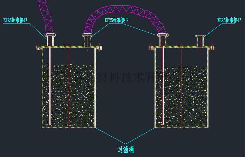 | 過濾桶組件 | · 兩個過濾器之間通過波紋管串聯在一起。過濾器尺寸:φ200*300mm,過濾桶內裝有過濾介質,右側過濾桶的另一個KF25接口與真空系統連接 · 真空系統的抽氣口頂部安裝了一個粉塵過濾器,過濾器參數如下: · 連接口徑:KF25 · 材質:304不銹鋼 · 濾芯壽命:2000-4000H(可定期用壓縮氣體吹掃) · 流量:≥8L/S · 過濾精度:≤5um · 使用壓力范圍:1Pa~大氣壓(壓力小于1Pa后會面線影響氣體流速) |