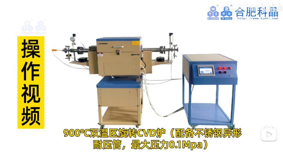 | 設備名稱型號 | 900℃雙溫區旋轉CVD爐(配備不銹鋼異形耐壓管,最大壓力0.1MPa) OTF-1200X-4-R-II |